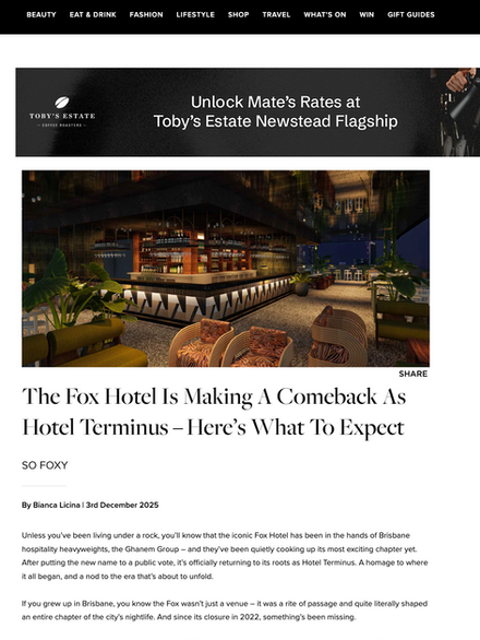 Terminus Hotel Announcement - Hotel Precinct, Brisbane